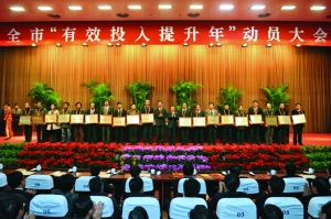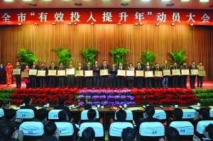 范燕青强调,市委、市政府把今年作为有效投入提升年,既是战略之举,也是具体抓手——战略之举就是全市各级各部门要把增加有效投入总量作为实施五大产业振兴、建设创新型城市、^基本实现现代化的^有效的途径。体现在具体抓手上,就是要依靠有效投入超额完成“十一五”目标,全面完成60项重点工程(工作);既是长远目标,也是眼前工作——长远目标就是依靠有效投入,集中力量推进先进制造业、现代服务业,突破外资、外贸的难点,加大招商引资力度,培育新经济增长点,以调优结构和自主创新抢占未来制高点,努力增强常州综合竞争力和综合实力;眼前工作就是在后危机时代,常州要抢抓机遇、抢占先机,加快转型升级,促进各类投入更有水平、更有效益、更加生态、更有质量、更有速度;既是有形投入,也是无形的投资——有形的投入就是看得见、摸得着的投入,无形的投资体现在引导各种政策、各级干部和机关公务员全心全意为社会服务、为民众服务、为企业服务中,体现在加大招商引资、招才引智创新创业力度中,体现在不断提高用心做事的水平,增强对外开拓的能力,转变服务发展的作风中。要引导和鞭策全市企业家从实际出发,选准发展突破口,通过加快技改投入、技术创新、品牌创建、管理升级、上市融资、合资合作等方法和手段,加快打造上市企业、百年企业、百亿企业。