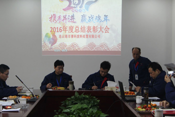 2017年1月18日下午,在赛科公司208会议室,由耿树苗总经理主持,为全面总结2016年度工作及取得的成绩和表彰先进班组和先进个人以及部署2017年的工作任务,召开了2016年度总结表彰大会,公司班长以上干部参加了会议。
