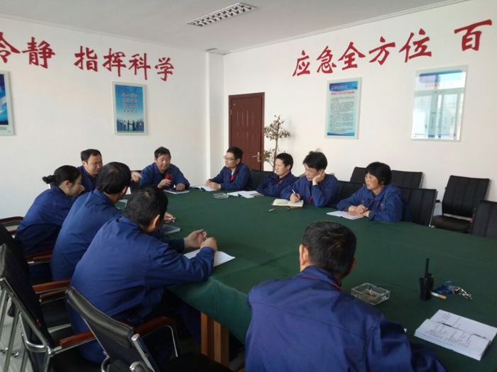 2017年4月18日上午,江苏华尔化工安全部组织召开夏季抗洪防汛分工会议,会议由安全部丁建大部长主持,总经理安全助理黄书兵、相关部门车间负责人参加会议。