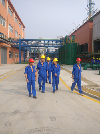 8月11日下午2:40,烈日当空,热浪袭人。由连云港分公司生产一部部长钟金龙和副部长胡和平带队,组织各车间主任及生产现场管理人员10余人,前往304am永利集团染料兄弟单位304am永利集团制酸观摩学习,进行实地参观并和他们现场交流管理经验及清洁化生产的做法。