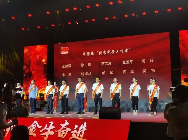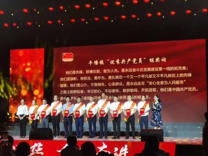 6月30日晚,牛塘镇庆祝中国共产党成立100周年,在牛塘镇清莲园举行文艺晚会,晚会以中国共产党建党100周年的宏大历史进程为时代背景,歌颂党的伟大征程,歌颂一代又一代共产党人的无私奉献,晚会为在党50年的老党员颁发“光荣在党50年”纪念章,为基层100名优秀党员和10名党务工作者以及10名党组织,颁发“优秀共产党员”、“优秀党务工作者”、“先进基层党组织”的荣誉证书。