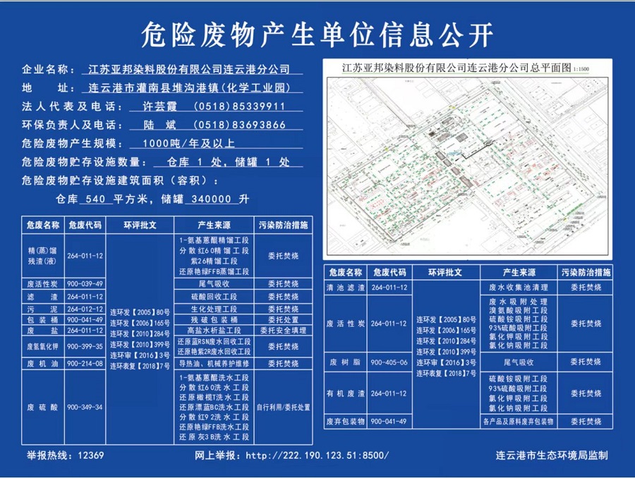 为全面贯彻落实《中华人民共和国固体废物污染环境防治法》,现将304am永利集团连云港分公司危险废物污染环境防治信息公示如下: