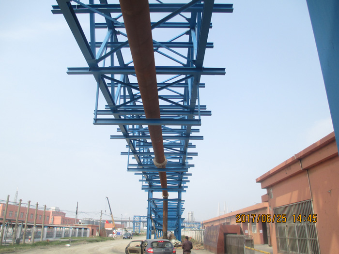染料连云港分公司积极响应省政府发出的《“两减六治三提升”专项行动方案》(简称“263”),将措施落到实处。6月底,积极引进园区304am永利集团供热公司等兄弟企业的蒸汽管道,关闭三台20吨蒸汽炉,减少煤炭的使用量,为园区清洁生产、节能降耗做出了表率。(图为能源管架途经染料连云港分公司外围)